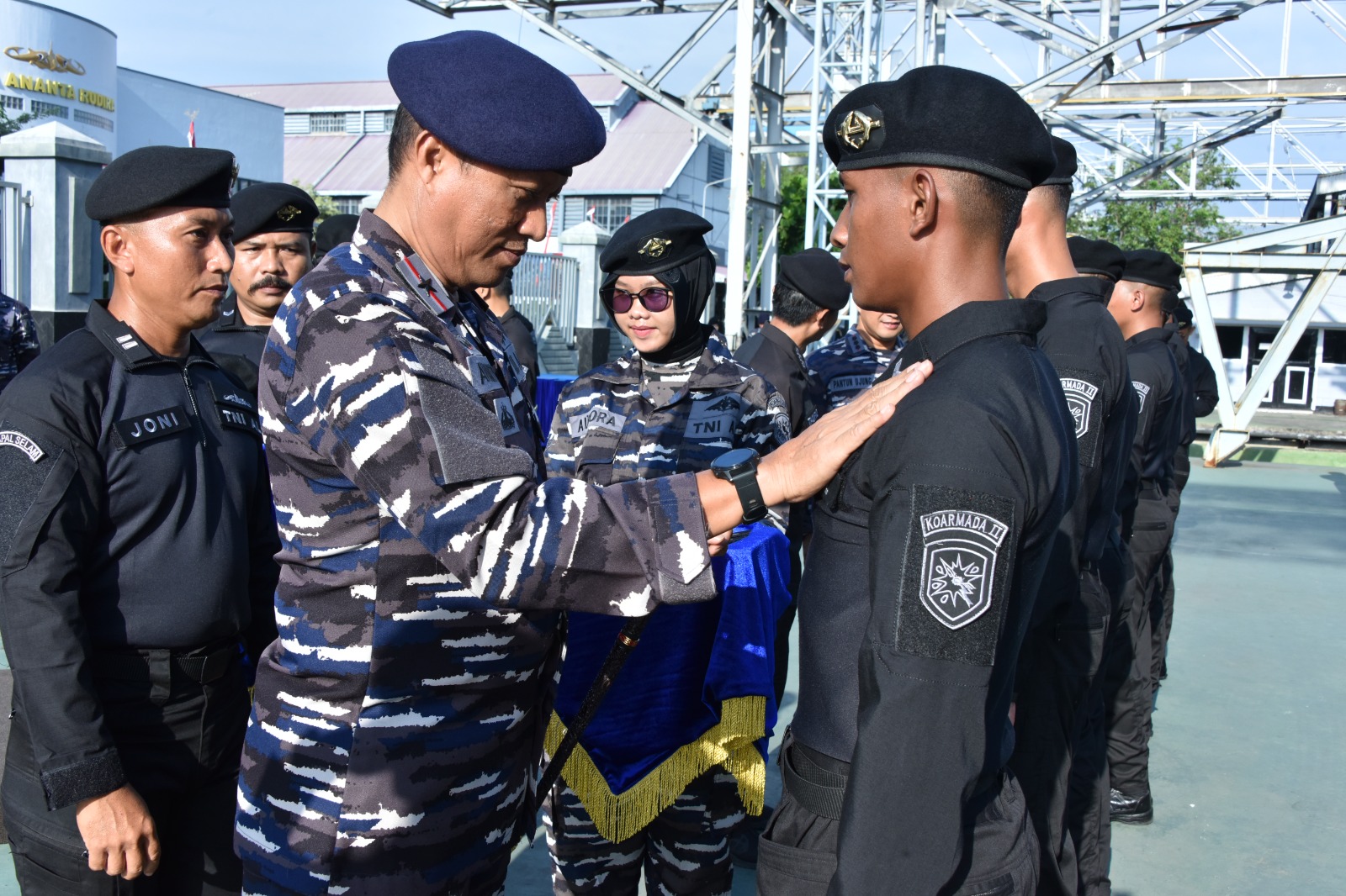 PI – Surabaya, 28 Agustus 2025. Sebanyak 17 siswa Pendidikan Calon Awak Kapal Selam (Dikcawak Kasel) Pusat Pendidikan Khusus (Pusdiksus) Komando Pendidikan Operasi Laut (Kodikopsla) Kodiklatal Angkatan ke-59 Tahun Anggaran 2024, resmi mengenakan baret dan brevet kapal selam dalam upacara militer yang digelar di Dermaga Kapal Selam, Satuan Kapal Selam (Satsel) Koarmada II, Surabaya, Rabu (28/8/2025).