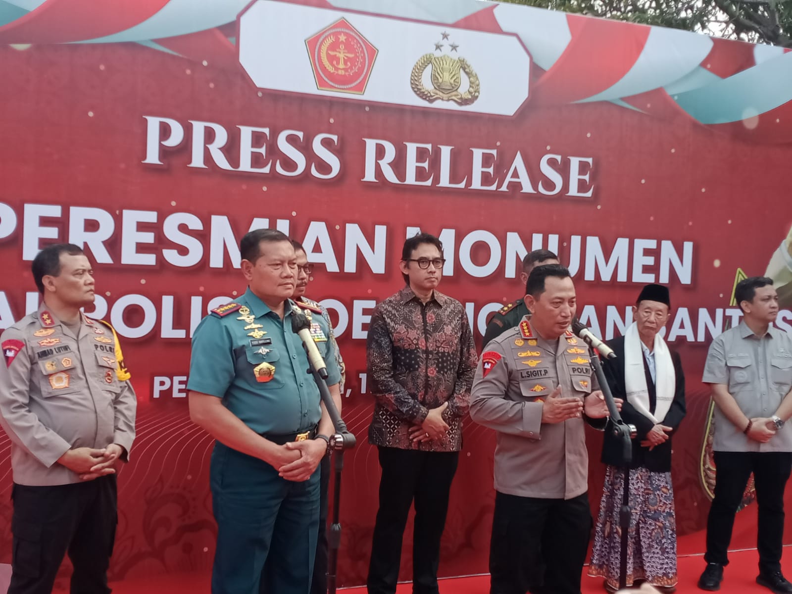 PI – Tegal, Komandan Pangkalan TNI Angkatan Laut (Danlanal) Tegal Letkol Laut (P) Adi Surono, S.T., M.T., M.Tr.Hanla., CTMP mendampingi Wakapolda Jateng serta jajaran PJU Polri bersama Forkopimda Pekalongan menyambut kedatangan Panglima TNI Laksamana TNI Yudo Margono dan Kapolri Jenderal Pol Drs. Listyo Sigit Prabowo dalam rangka meresmikan monumen Jenderal Polisi Hoegeng Imam Santoso yang bertempat di Halaman kawasan Stadion Hoegeng di kelurahan Pasirsari Keraton Kramat Pekalongan Barat. Sabtu (11/11/23)