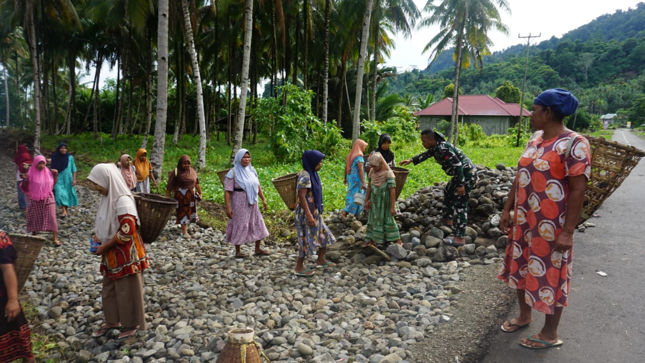 sementara untuk kami ini merupakan cambukan penyemangat karena ibu ibu saja bersemangat membantu Bapak Bapak dan Anggota Satgas TMMD,