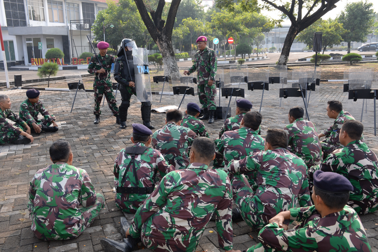 Kegiatan latihan Penindakan Huru-Hara (PHH) dipimpin oleh Pasops Denma Lantamal V Mayor Laut (P) Ali Sahbana dengan didampingi oleh Instruktur sekaligus pelatih dari Batalyon Marinir Pertahanan Pangkalan (Yonmarhanlan) V Lettu Marinir Suroso yang sehari-hari menjabat sebagai Komandan Pleton Kompi Markas (Dantonma) Yonmarhanlan V Surabaya.