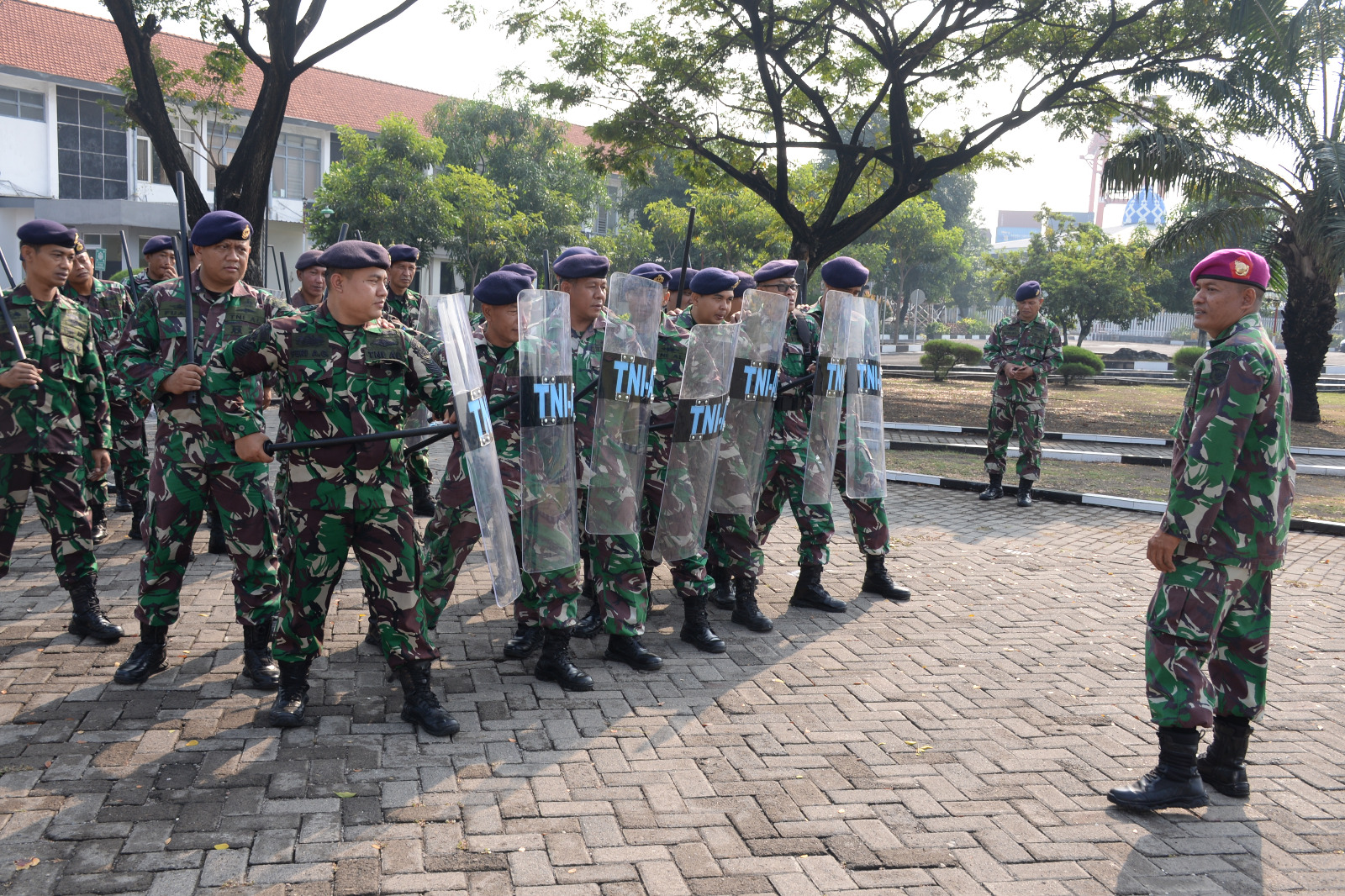 Hadir dalam kegiatan latihan Penindakan Huru-Hara tersebut Perwira Sops Denma Lantamal V, para Bintara dan Tamtama di jajaran Lantamal V.