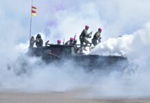 PI - Sidoarjo, (19/11/2025). Pesawat Casa TNI Angkatan Laut melaksanakan dukungan operasi penerjunan malam (Night Static Jump) bagi 57 Perwira Siswa Pendidikan Dasar Kecabangan (Dikpasis) AAL Angkatan ke-71 yang digelar..