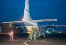 Pesawat Casa TNI AL Laksanakan Dukungan Night Static Jump Dikpasis AAL
