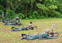 PI - (10/3/2026). Guna meningkatkan naluri dan kemampuan tempur prajurit, personel Komando Daerah TNl Angkatan Laut lX (Kodaeral lX) menjalani latihan secara bertahap, bertingkat dan berlanjut kemampuan menembak laras panjang..