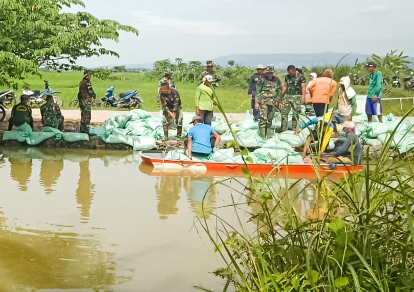 Danramil 0813-10/Kanor Kapten Cba Puji Hariyono, mengatakan, kemarin Selasa (24/12/2024), pihaknya bersama 18 anggota Babinsa, serta didukung 1 unit perahu serbaguna Kodim 0813 Bojonegoro langsung turun ke lokasi jebolnya tanggul. Mereka bersatu-padu, bergotong royong dengan warga masyarakat Desa Kedungprimpen, memulai pembenahan titik tanggul yang jebol.