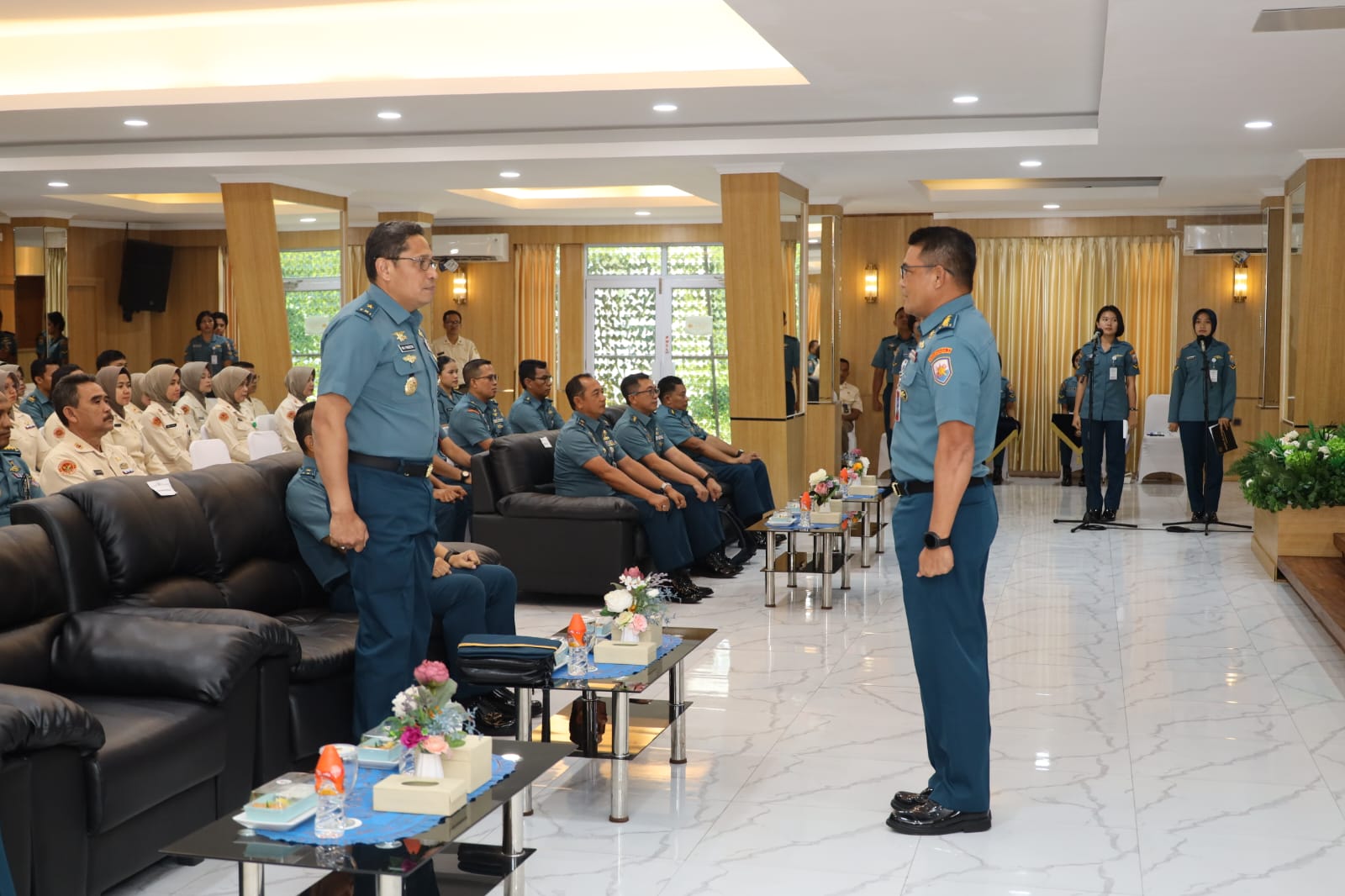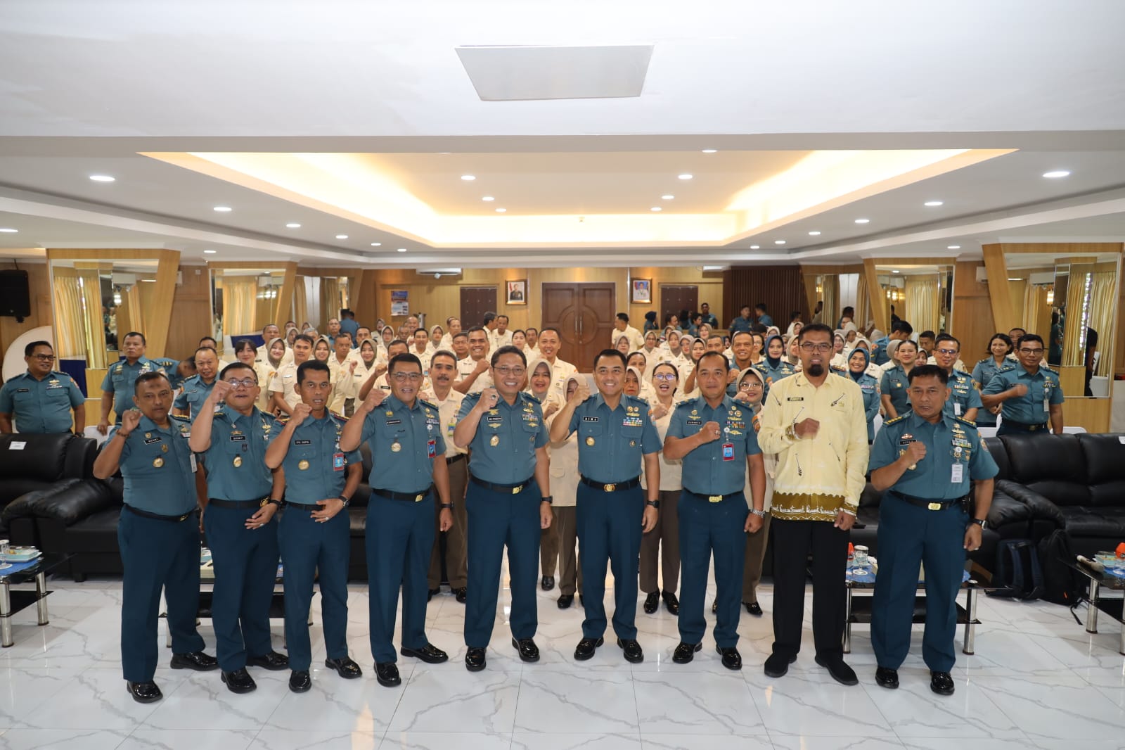 PI – Tanjungpinang, Perwira serta PNS Mengikuti Sosialisasi Bimbingan Teknis (Bimtek) terkait Pemisahan, Pemberhentian, dan Disiplin Pegawai Negeri Sipil (PNS) TNI AL Tahun Anggaran 2024 di Aula Yos Sudarso, Koarmada I Tanjungpinang, Kamis (8/8/2024).