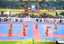 PI - Banyuwangi, Komandan Pangkalan TNI AL Letkol Laut (P) Indra Nusha R, bersama Forkopimda Banyuwangi menyaksikan opening ceremony Banyuwangi karate open championship memperebutkan piala Bupati Banyuwangi yang dibuka langsung..