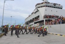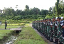 PI - Jayapura, Rabu (21/06/2023). Prajurit Batalyon Marinir Pertahanan (Yonmarhanlan) X Jayapura Pasmar 3 tampilkan atraksi demo kolone senapan dalam rangka peresmian Pangkalan TNI Angkatan Laut (Lanal) Sarmi dan Kegiatan..