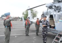 PI - Sidoarjo, Puspenerbal (6/7/2025). Dalam rangka mendukung pemantauan udara dan peninjauan lokasi insiden tenggelamnya KMP Tunu Pratama Jaya di Selat Bali Kamis malam (3/7), TNI Angkatan Laut mengerahkan Helikopter..