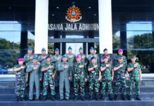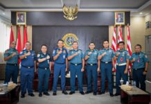 PI - Surabaya (3/7/2025). Guna meningkagkan kerjasama, Komandan Pusat Penerbangan TNl Angkatan Laut Laksda TNI Bayu Alisyahbana melaksanakan kunjungan resmi (Courtesy Call) kepada Komandan Kodiklatal, Letjen TNI (Mar) Nur Alamsyah..