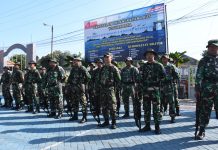 PI - Yogyakarta, Guna mengasah kemampuan dan meningkatkan kedisiplian, Prajurit Lanal Yogyakarta melaksanakan latihan Peraturan Baris Berbaris (PBB) bersenjata di lapangan Apel Mako Lanal Yogyakarta. (09/06/2023). Latihan Peraturan Baris Berbaris..