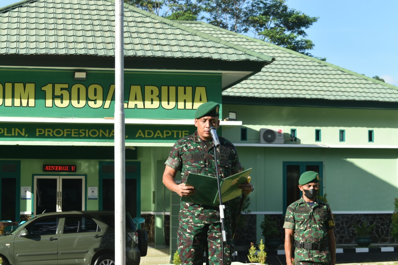 Menjelang akhir Ramadhan yang hitungan hari lagi, Dandim 1509/Labuha Letkol Kav Romy Parnigotan Sitompul Lakukan Apel pengecekan kesiapan Pasukan untuk menyambut Hari Raya Idulfitri 1443H 1 Syawal, apel Pengecekan pasukan dilaksanakan dilapangan Upacara Makodim 1509/Labuha Desa Kampung Makian, Selasa (26/04/2022)