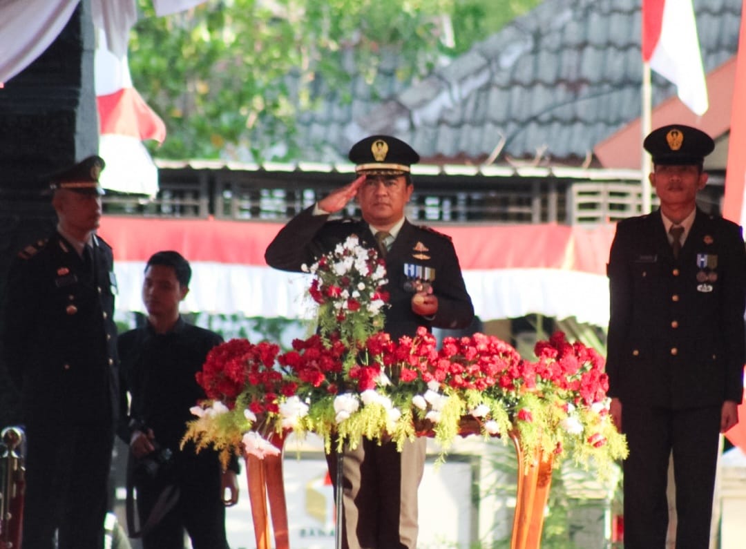 Kegiatan yang dimulai sekitar pukul 16.00 WIB ini mengusung tema ‘Terus Melaju Untuk Indonesia Maju’, dengan Komandan Upacara (Danup) Iptu Slamet Hariyanto. Sedangkan peserta upacara dari unsur TNI-Polri, Satpol PP, Damkar, Dishub, ASN lingkup Pemkab Bojonegoro, Linmas, Satpam, Mahasiswa, pelajar dari beberapa sekolah yang ada di Kota Bojonegoro, serta Keluarga Besar TNI (KBT) yang terdiri dari FKPPI, PPM dan HIPAKAD.