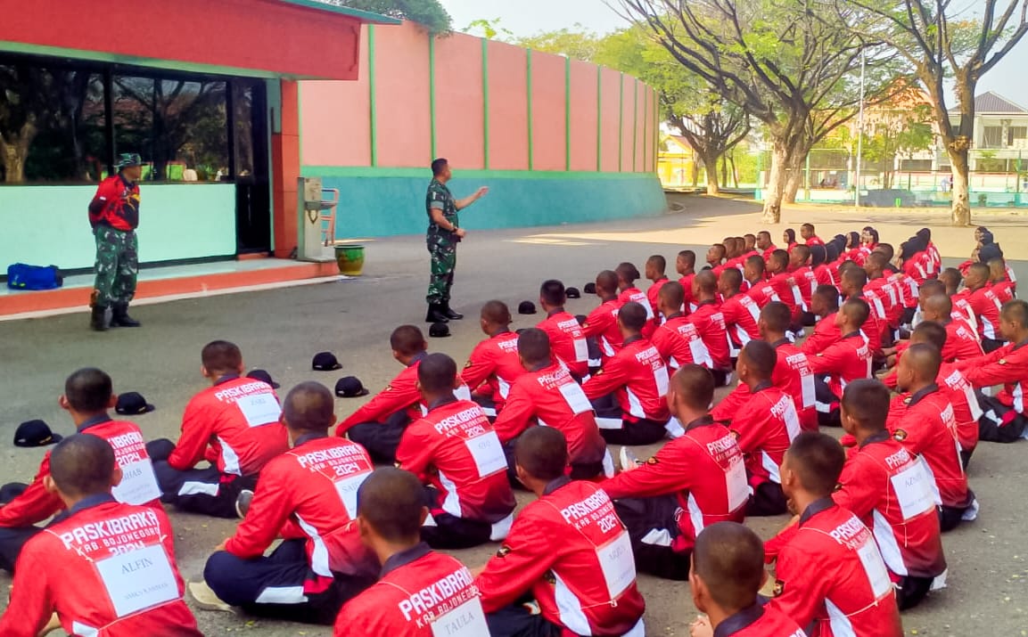 PI – BOJONEGORO, Komandan Kodim 0813 Bojonegoro Letkol Czi Arief Rochman Hakim, SE., MM., memberikan motivasi dan arahan anggota Pasukan Pengibar Bendera (Paskibra) Kabupaten Bojonegoro di Stadion Letjend H. Soedirman, agar dalam mengikuti latihan penuh semangat, sehingga saat pelaksanaan nantinya berhasil sesuai target yang telah diharapkan, Selasa (23/7/2024).