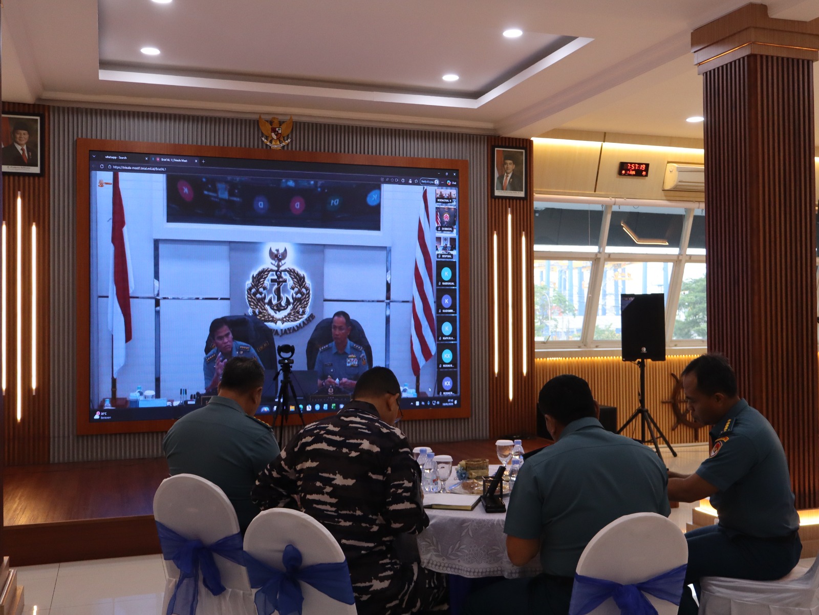 PI – Surabaya, Komandan Komando Daerah TNI AL Laksda TNI Ali Triswanto, S.E., M.Si., mengikuti Video Conference (Vicon) Temu Pagi bersama Kepala Staf Angkatan Laut (Kasal) Laksamana TNI Dr. Muhammad Ali, S.E., M.M., M.Tr.Opsla., yang dilaksanakan sebagai sarana penyampaian arahan pimpinan TNI Angkatan Laut kepada seluruh jajaran. Senin (19/01/2026)