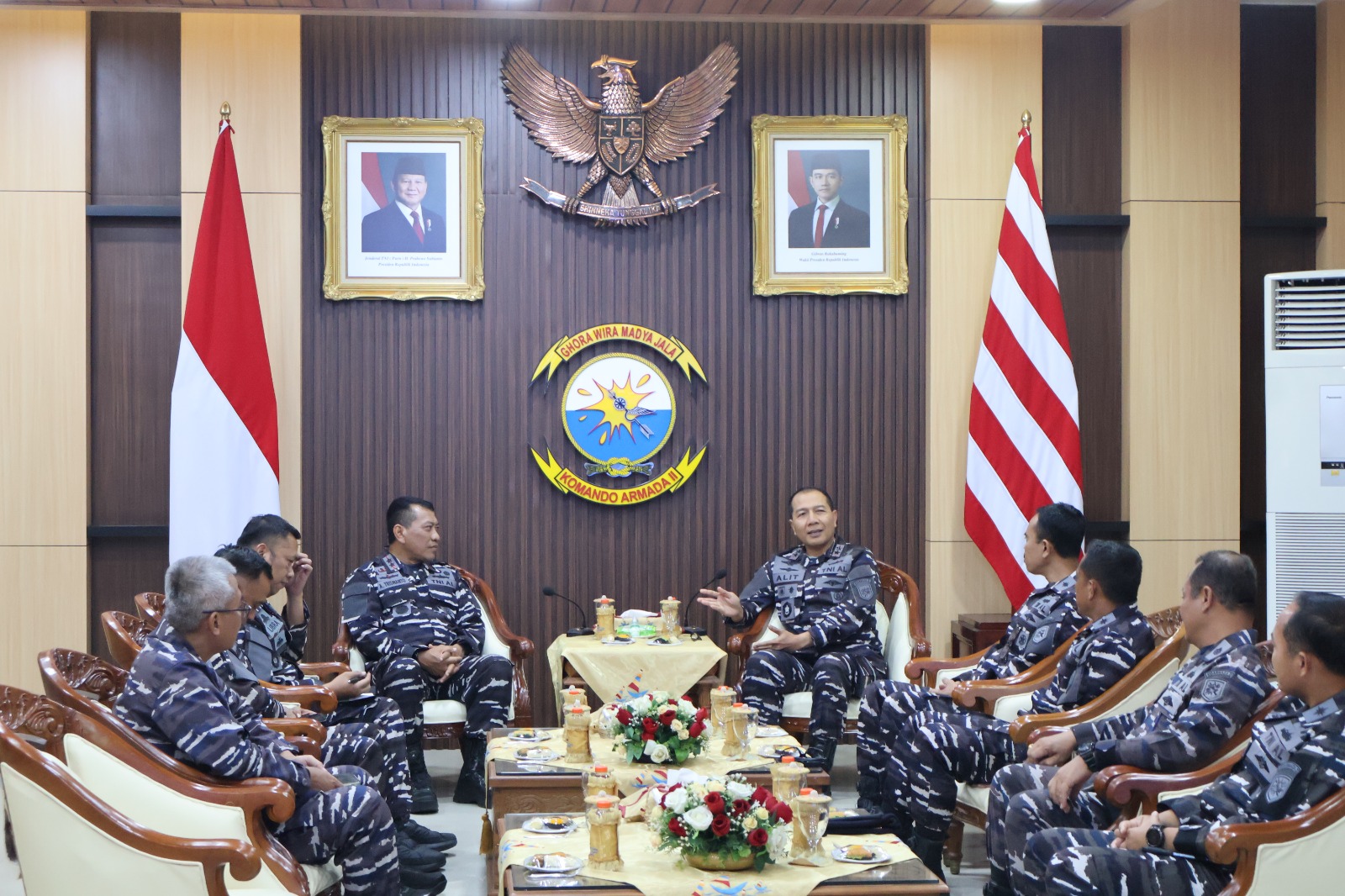 Dalam pertemuan singkat namun penuh kehangatan tersebut, Pangkoarmada II mengucapkan selamat datang dan terima kasih atas kunjungan yang dilaksanakan oleh Dankodaeral V ke Markas Koarmada II.
