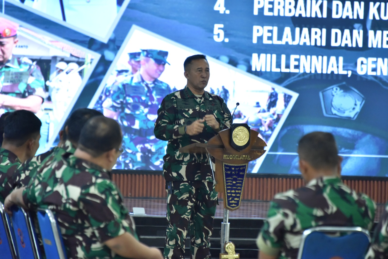 PI – Surabaya, 21 Agustus 2025 Dalam rangka memperkuat kualitas pendidikan dan pembentukan karakter peserta didik (Serdik) di lingkungan Komando Pembinaan Doktrin, Pendidikan dan Latihan TNI AL (Kodiklatal), Komandan Kodiklatal Letjen TNI Marinir Nur Alamsyah memberikan pengarahan khusus kepada seluruh Pembimbing Siswa (Bingsis) di jajaran Kodiklatal, yang berlangsung di Gedung R. Mulyadi, Kodiklatal, Surabaya. Kamis (21/8).
