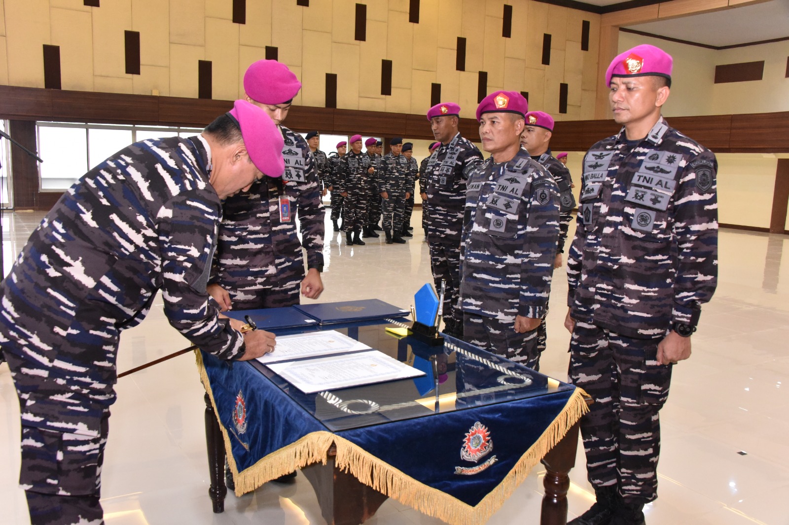 PI – Surabaya, 28 Februari 2025 Komandan Kodiklatal Letjen TNI Marinir Nur Alamsyah, memimpin Upacara Serah Terima Jabatan (Sertijab) tiga jabatan strategis di Kodiklatal. Acara yang berlangsung di Gedung R.E. Moeljadi Kodiklatal, Bumimoro Surabaya, menandai pergantian pejabat penting di lingkungan Kodiklatal, yaitu Kepala Dinas Penerangan (Kadispen), Koordinator Staf Administrasi (Koorsmin), dan Kepala Staf Kesehatan (Kasatkes) Kodiklatal.