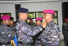 PI – Surabaya, 2 Maret 2024, Berdasarkan Keputusan Kepala Staf Angkatan Laut, Nomor Kep/409/II/2024 tentang Pemberian Brevet Hiu Kencana, Komandan Kodiklatal (Dankodiklatal) Letjen TNI Marinir Nur Alamsyah bersama enam petinggi TNI lainnya resmi menjadi Warga Kehormatan Kapal Selam TNI Angkatan Laut (TNI AL), setelah disematkan Brevet Hiu Kencana oleh Kepala Staf Angkatan Laut (Kasal) Dr. Laksamana TNI Dr. Muhammad Ali saat berlayar di Selat Madura dengan Kapal Selam KRI Alugoro-405 yang dikomandani oleh Letkol Laut (P) Moh. Akbar, bertempat di Dermaga Madura, Koarmada II, Ujung Surabaya. Sabtu, (02/03/2024).