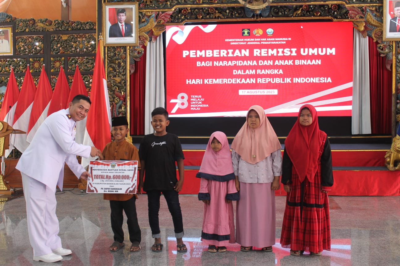 Usai Upacara Bendera, dilanjutkan dengan pemberian remisi kepada 159 orang narapidana Rutan Kelas II B di Pendopo Agung Kabupaten Bangkalan.