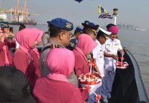 PI – Surabaya, Komandan Pangkalan Utama TNI AL (Danlantamal) V Laksamana Pertama TNI Eko Wahjono turut serta dalam upacara gelar pasukan Armada Jaya XLI TA 2023 yang merupakan Latihan puncak TNI Angkatan Laut dengan menggunakan seluruh unsur Sistem Senjata Armada Terpadu (SSAT) di Dermaga Madura Koarmada II Ujung, Surabaya. Selasa (27/06/2023).