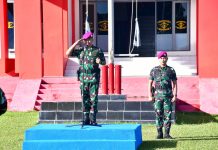 PI – Makasar, Danlantamal VI Brigadir Jenderal TNI (Mar) Amir Kasman, S.E., M.M. menerima audiensi Satgas Operasi Trisila TNI AL tahun 2023 bertempat di ruang Kajaolaliddo Mako Lantamal VI Makassar, Sabtu (06/05/2023)