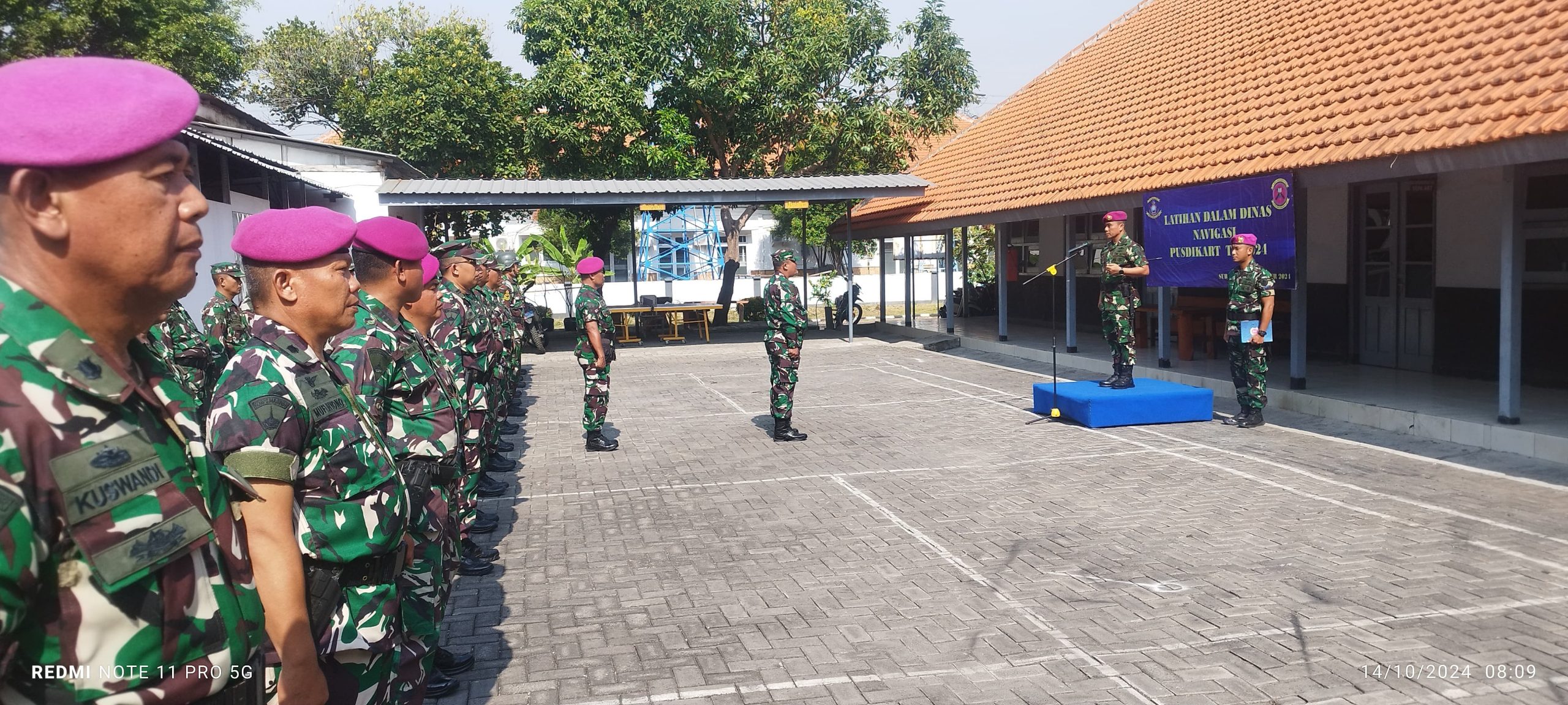 PI – Surabaya, 14 Oktober 2024 Komandan Pusdikart Kodikmar Kodiklatal Letkol Marinir Agus Nyubianto selaku inspektur upacara memimpin Pembukaan Latihan Dalam Dinas (LDD) Navigasi, PUD