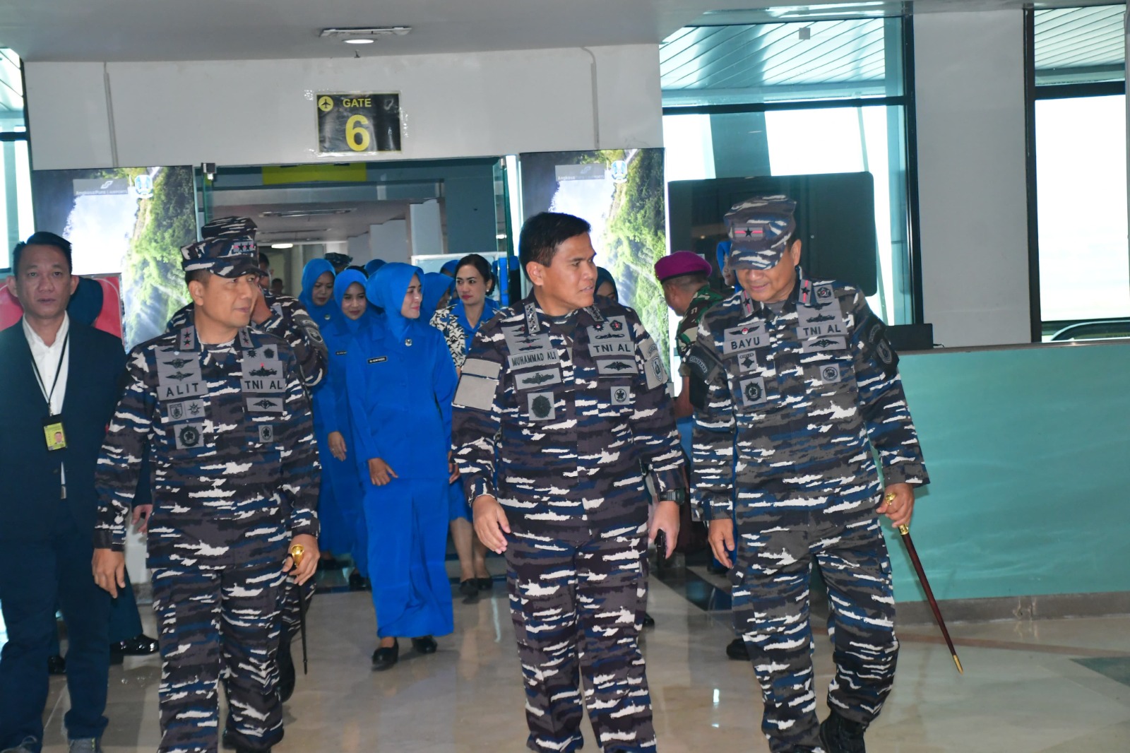KASAL didampingi Ketua Umum Jalasenastri, Ny. Ferra Muhammad Ali dan rombongan tiba di Bandara Internasional Juanda dengan menggunakan Pesud Garuda lndonesia GA304 rute Cgk – Sub.