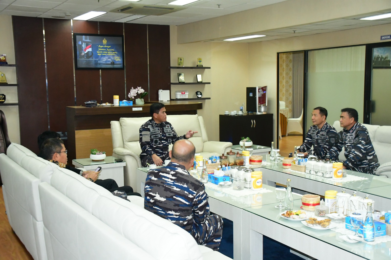 PI – Sidoarno, Komandan Pusat Penerbangan TNl Angkatan Laut Laksma TNl Bayu Alisyahbana turut menyambut kedatangan Kepala Staf Angkatan Laut (KASAL), Laksamana TNl Dr. Muhammad Ali dalam agenda kunjungan kerjanya di Surabaya di Terminal Kedatangan T1 Bandara Internasional Juanda, Kamis (22/5/2025).