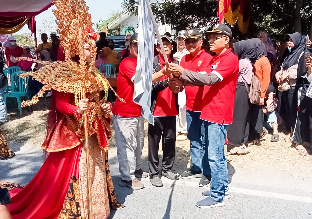 Puluhan peserta pawai budaya atau karnaval tersebut diberangkatkan (start) dari lapangan perumahan Bumi Damai Regency Desa Ngraseh menuju (finish) lapangan Desa Sumberarum Kecamatan Dander Kabupaten Bojonegoro Jawa Timur.