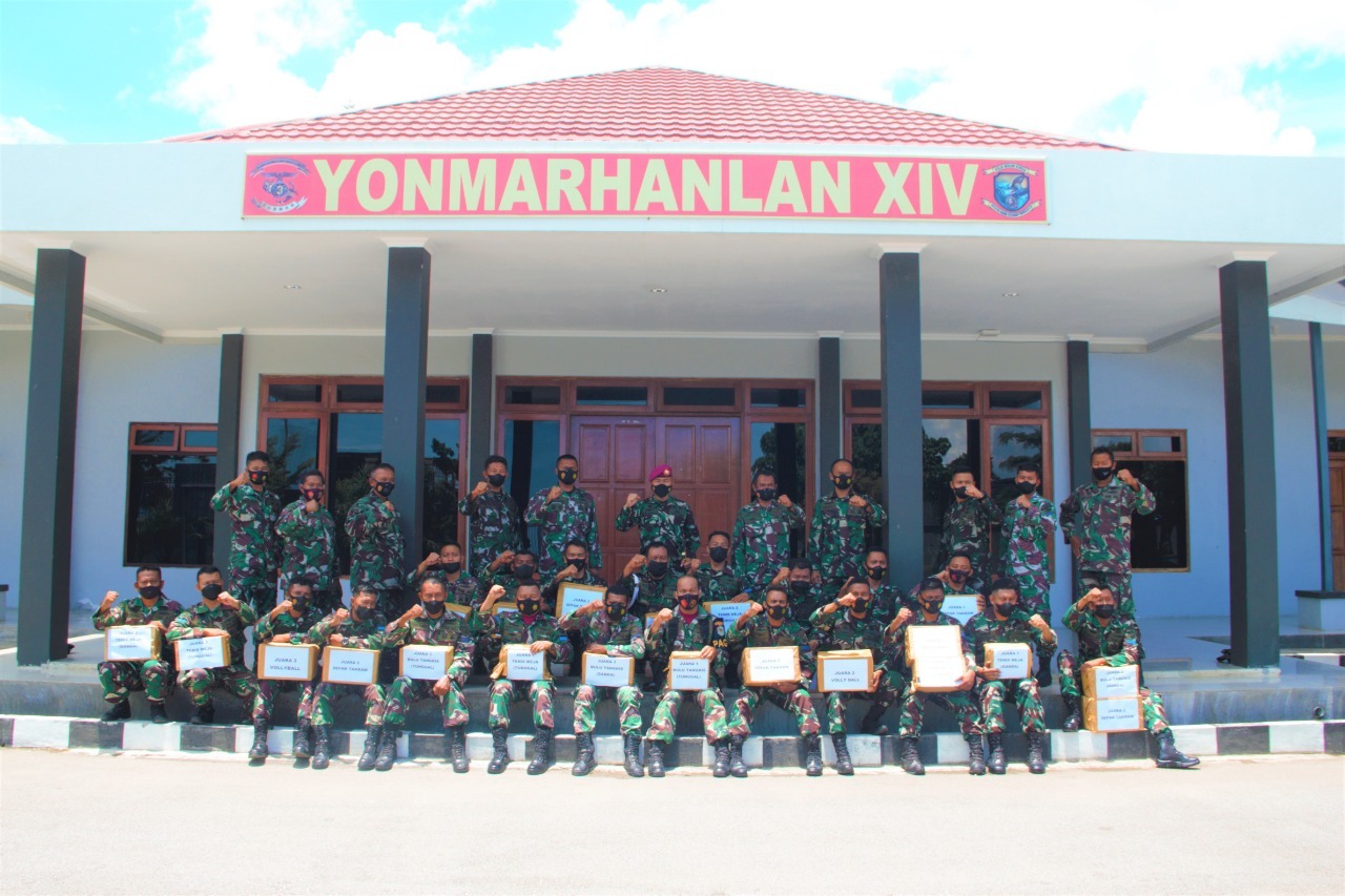 Paradigmaindonesia – Sorong (16/09/21), Komandan Batalyon Marinir Pertahanan Pangkalan XIV (Danyonmarhanlan XIV) Sorong Letkol Mar Bejo Santoso, M.Tr.Opsla memberikan apresiasi kepada prajurit Kasuari Perkasa yang telah menjuarai pertandingan antar Kompi bertempat di Mako Yonmarhanlan XIV Sorong, Jl. Arfak, Kampung Baru, Kota Sorong, Papua Barat. Kamis (16/09/2021).