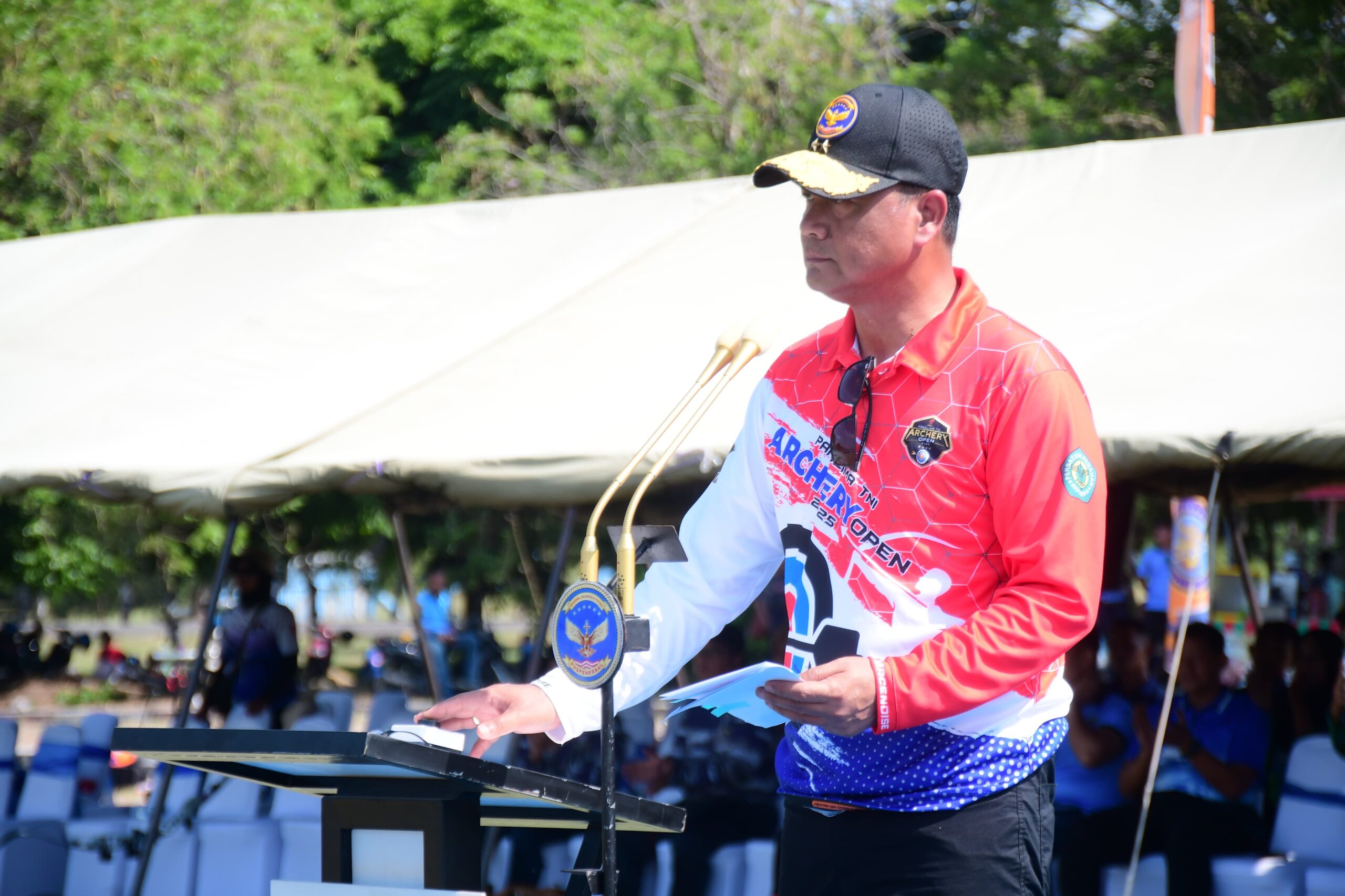 PI – Sidoarjo (18/9/2025).Kejuaraan Nasional Panglima TNl Cup Archery Open 2025 dalam rangka HUT ke-80 TNl Tahun 2025 yang diikuti 641 atlet resmi dibuka Komandan Pusat Penerbangan TNl Angkatan Laut Laksda TNl Bayu Alisyahbana mewakili Panglima TNl, Jenderal TNl Agus Subiyanto pada Kamis (18/9/2025).