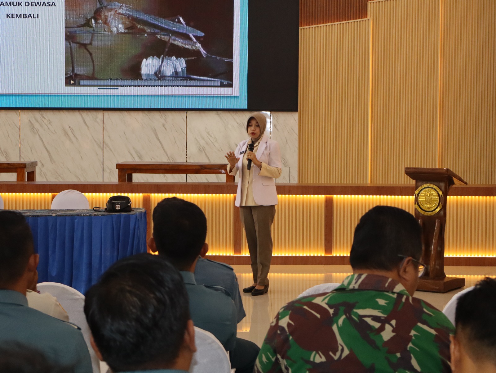 Tim Promosi Kesehatan (Promkes) Diskes Lantamal V memberikan ceramah dan informasi tentang bahaya Demam berdarah serta upaya pencegahannya, termasuk Gerakan 3M Plus (Menguras, Menutup, Mengubur, plus tindakan pencegahan lainnya).