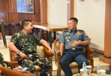 PI – Surabaya, 22 Juli 2025 Pada hari kedua pelaksanaan pertandingan Poral Wiltim Tahun 2025, Wakil Komandan Komando Pembinaan Doktrin, Pendidikan dan Latihan TNI Angkatan Laut (Wadan Kodiklatal) Laksda TNI Andi Abdul Azis hadir dan memberikan dukungan kepada tim voli Putri Kodiklatal melawan tim Puspenerbal, di GOR Akademi Angkatan Laut (AAL) Surabaya, Selasa (22/7/2025).