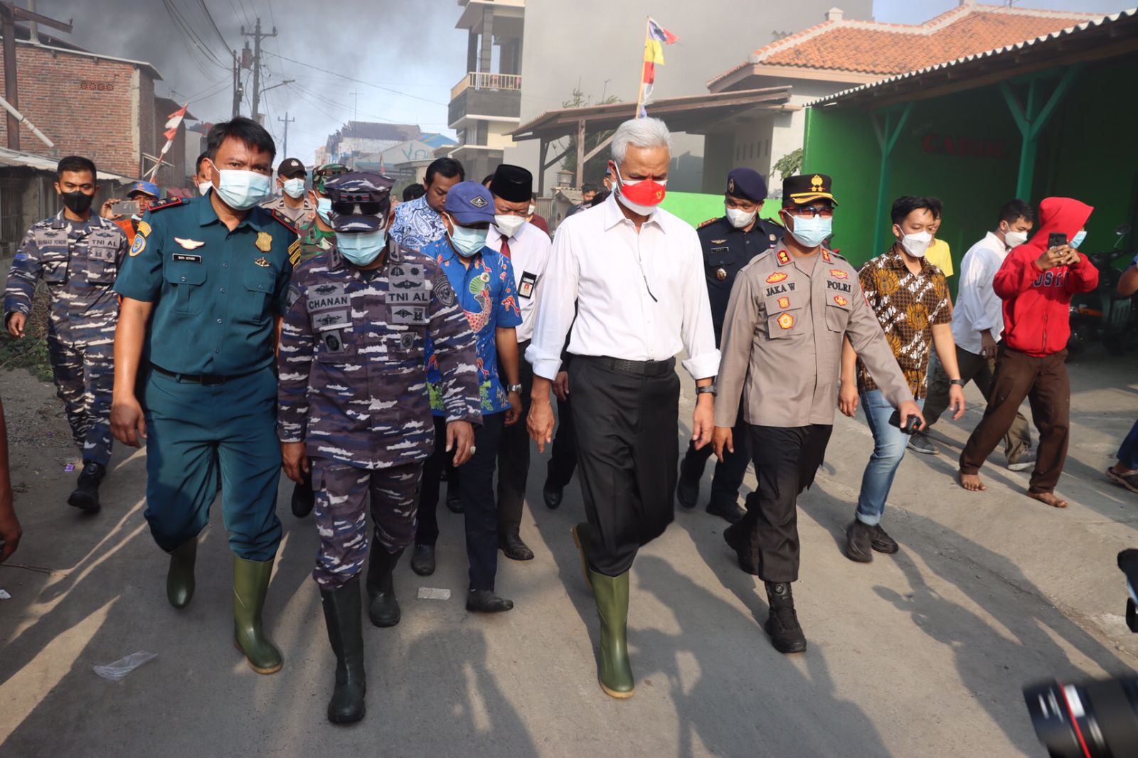 Dalam kunjungannya Gubernur Jawa Tengah meninjau langsung lokasi kawasan terjadinya kebakaran 52 kapal yang terjadi di TPI jongor Tegalsari Kota Tegal dan di sambut oleh jajaran Forkopimda Kota Tegal.