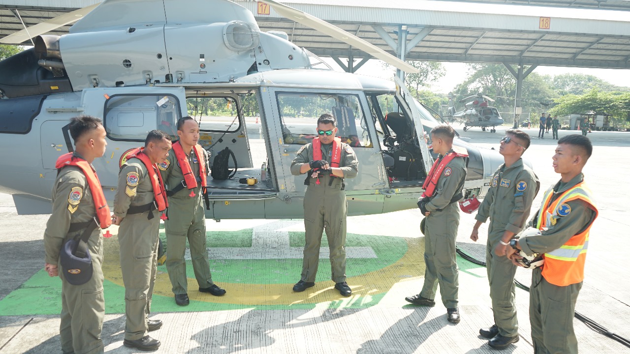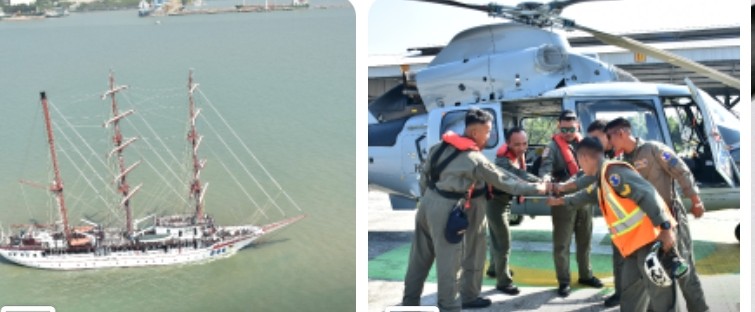 PI – Sidoarjo, Puspenerbal (20/7/2024) Helikopter TNI AL AS 565 MBe Panther yang dioperasikan Skuadron Udara 100 Wing Udara 2 Puspenerbal melaksanakan dukungan Photo Exercise terhadap Kapal Layar milik Angkatan Laut Vietnam, Lê Quý Đôn-286 yang sempat singgah beberapa hari di Koarmada II.