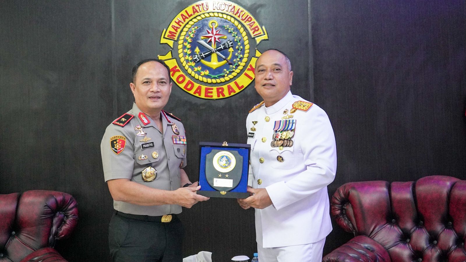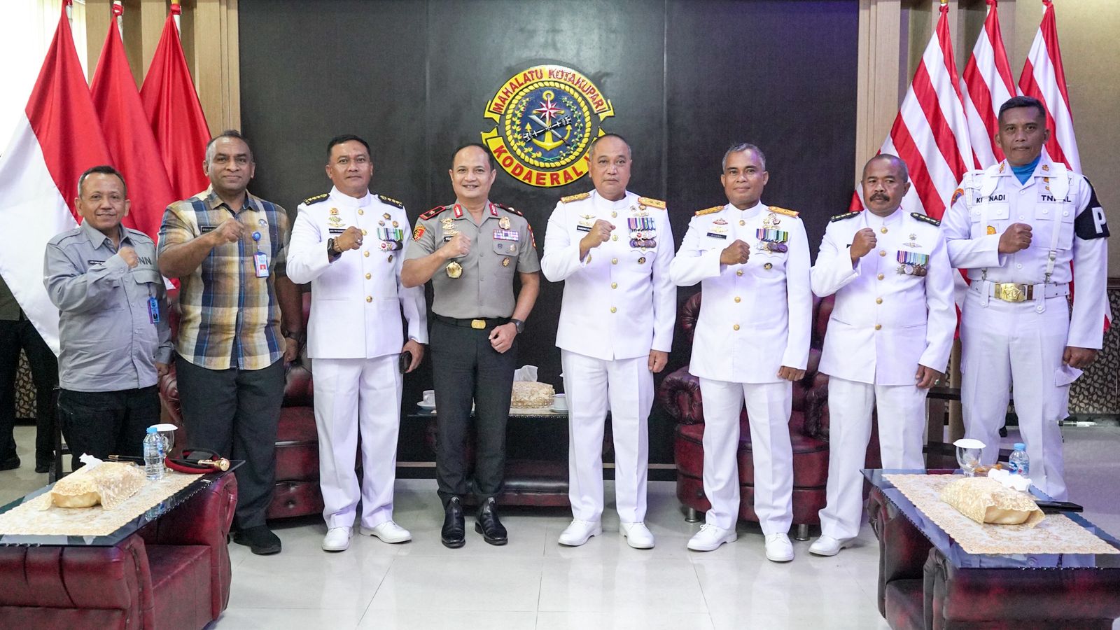 PI – Ambon (15/1/2026). Guna menjalin kerjasama dalam penanganan bahaya Narkoba, Komandan Komando Daerah Angkatan Laut lX (Kodaeral lX), Laksda TNl Hanarko Djodi Pamungkas menerima Courtesy Call (CC) Kepala Badan Narkotika Nasional Provinsi (BNNP) Maluku, Brigjen Pol. Prasetyo Rachmat Purboyo pada Kamis (15/1/2026).