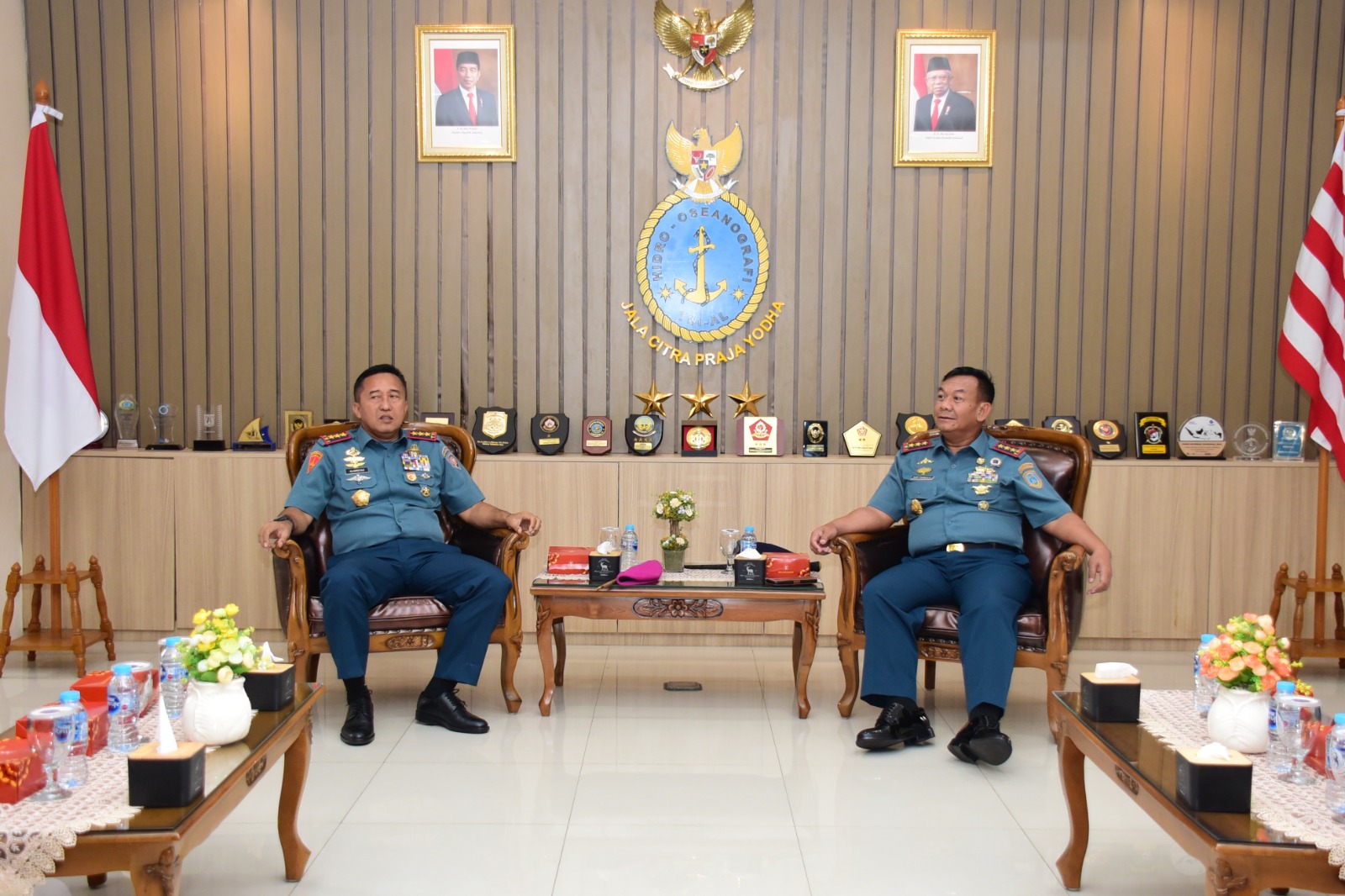PI – Jakarta, 19 Februari 2024, Dalam rangka menjalin sinergitas antar dua Kotama TNI Angkatan Laut, Komandan Kodiklatal (Dankodiklatal) Letjen TNI Marinir Nur Alamsyah melaksanakan kunjungan courtesy call kepada Komamdan Pushidrosal Laksdya TNI Budi Purwanto, bertempat di Anjungan Utama Mako Pushidrosal, Jakarta Utara. Senin, (19/02/2024).
