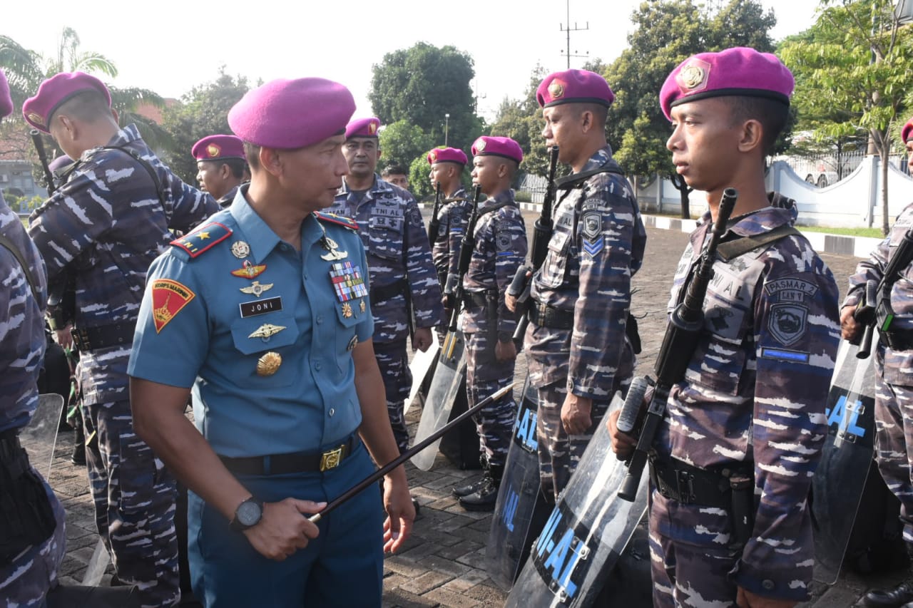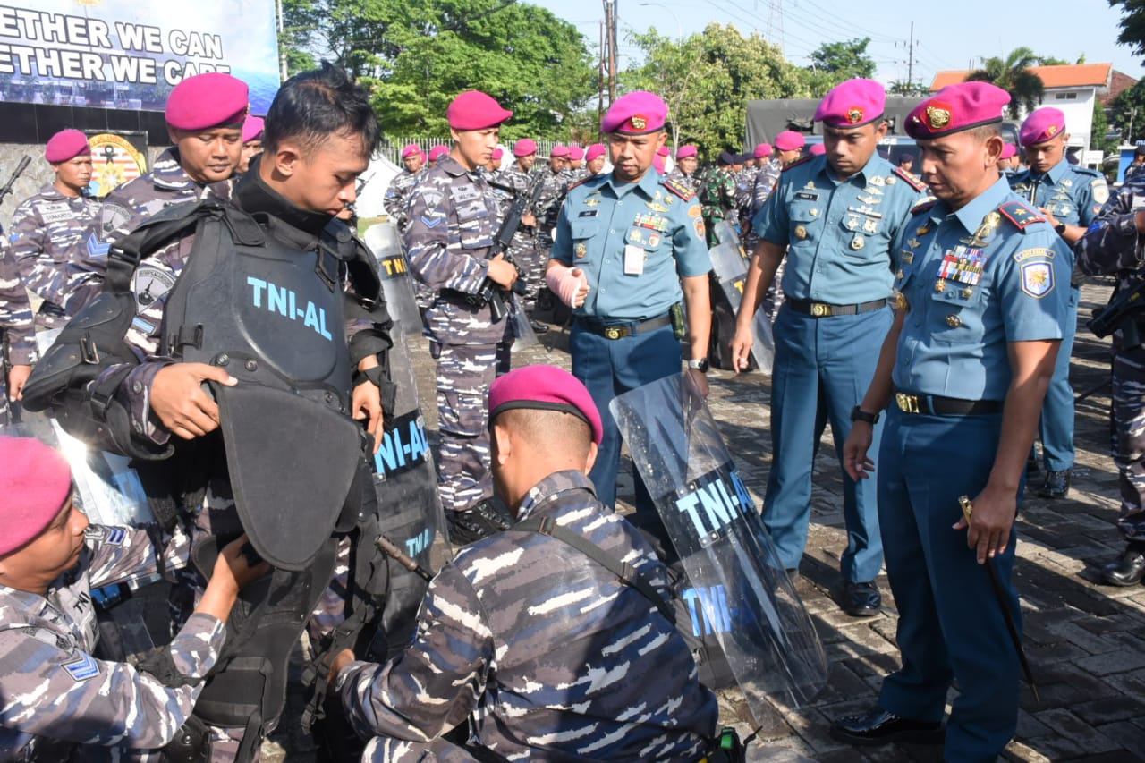 Usai apel gelar pasukan, Danlantamal V beserta Asisten Danlantamal V melakukan pemeriksaan personel dan juga kendaraan untuk persiapan pengamanan Pilpres 2024.