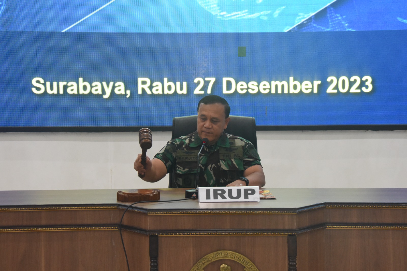 PI – Surabaya, 27 Desember 2023, Kepala Kelompok Tenaga Pendidik (Kapokgadik) Kodiklatal Brigjen TNI Marinir Sarjito resmi memimpin upacara Penutupan Kursus (Sus) Pembimbing Siswa (Bingsis) dan Micro Teaching TNI Angkatan Laut TA. 2023, bertempat di JOPR Gedung Soedomo Kodiklatal, Bumimoro Surabaya. Rabu (27/12/2023).