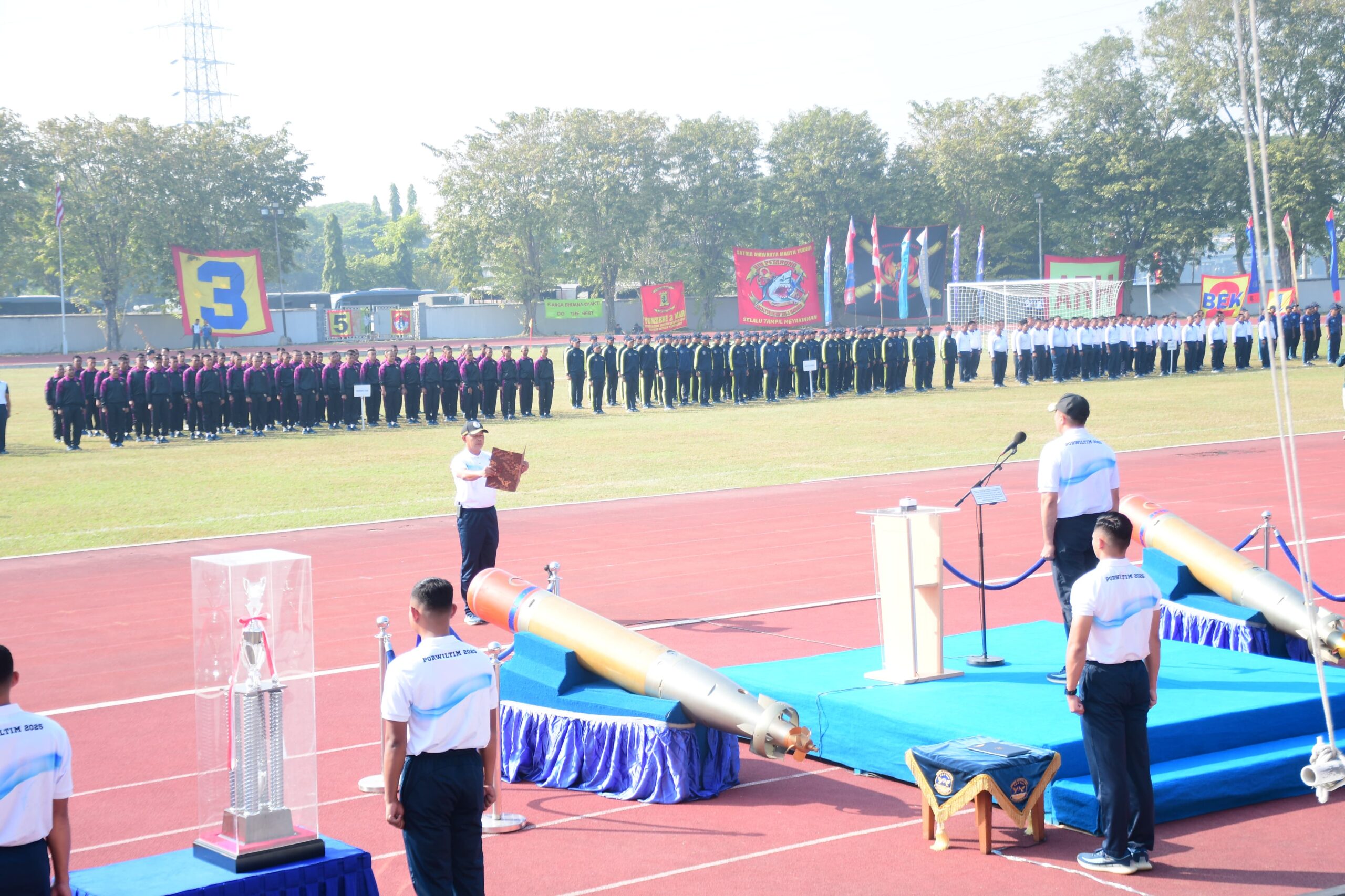 PI – Surabaya, (21/7/2025). Pekan Olah Raga TNI AL Wilayah Timur (Poral Wiltim) Tahun 2025 resmi dibuka, semangat sportivitas yang dibangun melalui pertandingan akan memperkuat solidaritas antar satuan, untuk itu seluruh peserta diharapkan dapat menjunjung tinggi nilai-nilai sportivitas, disiplin, dan kebanggaan sebagai prajurit jalasena.