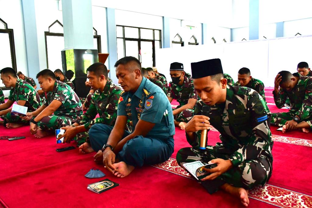 Segenap prajurit Detasemen Markas Komando (Denmako) Pasmar 3 menggelar doa bersama dalam rangka mengenang satu tahun tenggelamnya KRI Nanggala-402 di Peraian Bali yang diawaki oleh 53 prajurit terbaik TNI Angkatan Laut, bertempat di Masjid Al-Mu’min, Jl. Sorong-Klamono, Km. 16, Distrik Klaurung, Kota Sorong, Papua Barat. Kamis (21/04/2022).