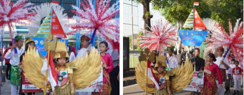 Kelas 4B : Fidelia Ykaterina Sihombing, Kelas 5A: Rasyid Bagus Prasetyo, Kelas 5B : Nadya Kamila Rasyidah, Kelas 6A Gwen Clarissa, Kelas 6B Muhammad Rafa Adrian Permana dan Best costum overall finraih oleh Daffa Arizky Riyadi, (yht/dar).