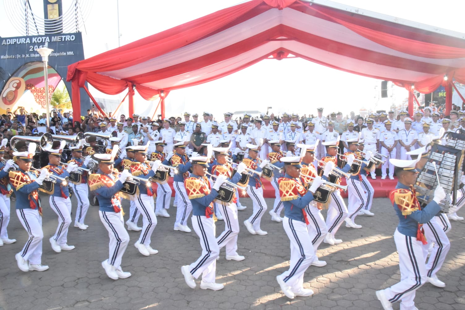 PI – Makasar, Ribuan warga Kota Makasar mengapresiasi dan terpukau saat menyaksikan kirab kota, yang dilakukan oleh Taruna Akademi Angkatan Laut (AAL) dalam rangka Multilateral Naval Exercise Komodo 2023, Makasar selasa (06/06).