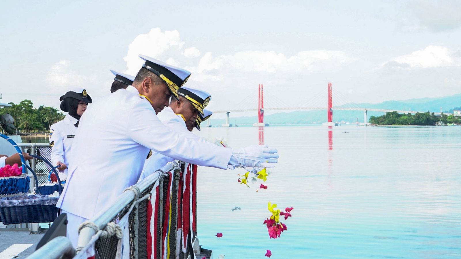 Komandan Kodaeral IX Laksamana Muda TNI Hanarko Djodi Pamungkas S.H. memimpin langsung jalannya upacara dan tabur bunga Hari Dharma Samudra tersebut.