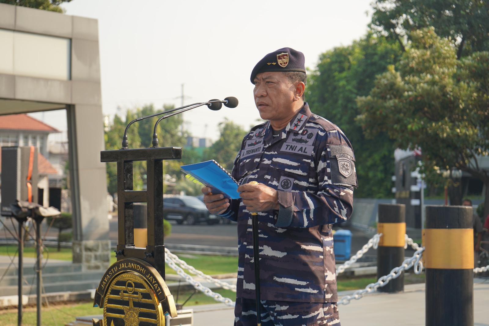 Pada kesempatan tersebut, Dankodaeral V membacakan amanat Kepala Staf Angkatan Laut (Kasal) Laksamana TNI Dr. Muhammad Ali, S.E., M.M., M.Tr.Opsla., yang mengatakan, “Setiap tanggal 9 oktober kita memperingati hari Kesehatan TNI Angkatan Laut, sebagai bentuk penghormatan kepada jasa para pendahulu sekaligus pengingat bahwa kesehatan merupakan faktor fundamental dalam membangun kekuatan pertahanan negara di laut.