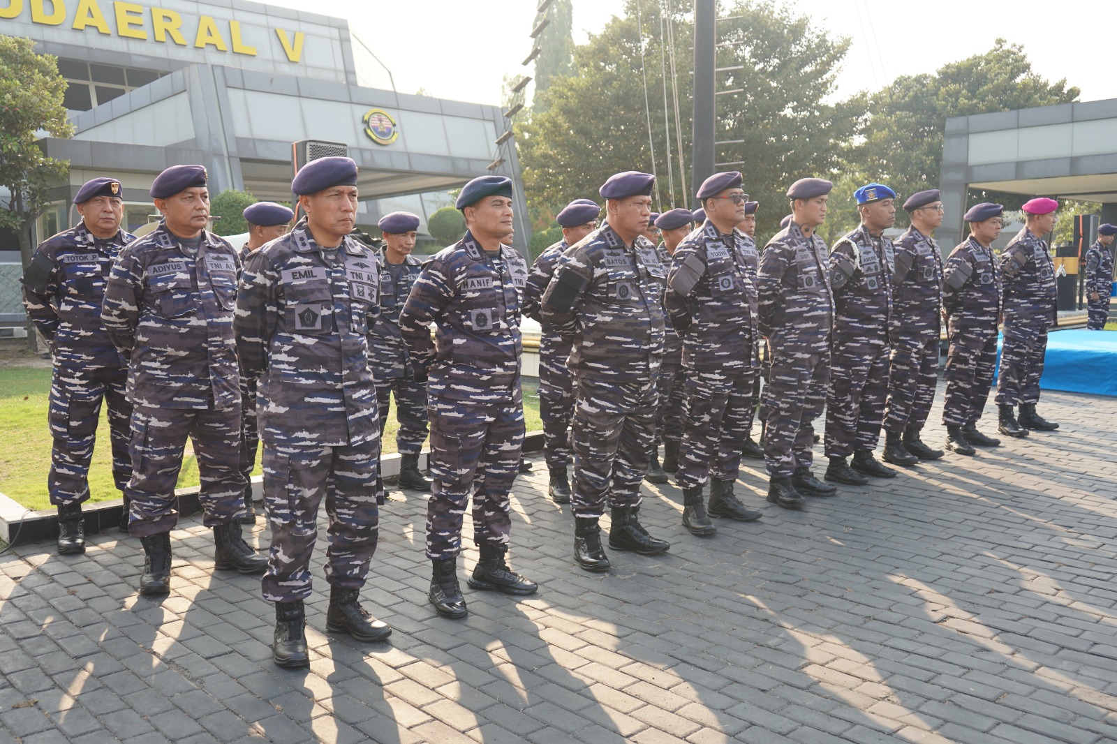 PI – Surabaya, Komandan Komando Daerah TNI AL Laksda TNI Ali Triswanto, S.E., M.Si., memimpin apel khusus dalam rangka memperingati Hari Kesehatan TNI AL Tahun 2025, di lapangan apel Mako Kodaeral V, Perak, Surabaya. Kamis (09/10/2025)