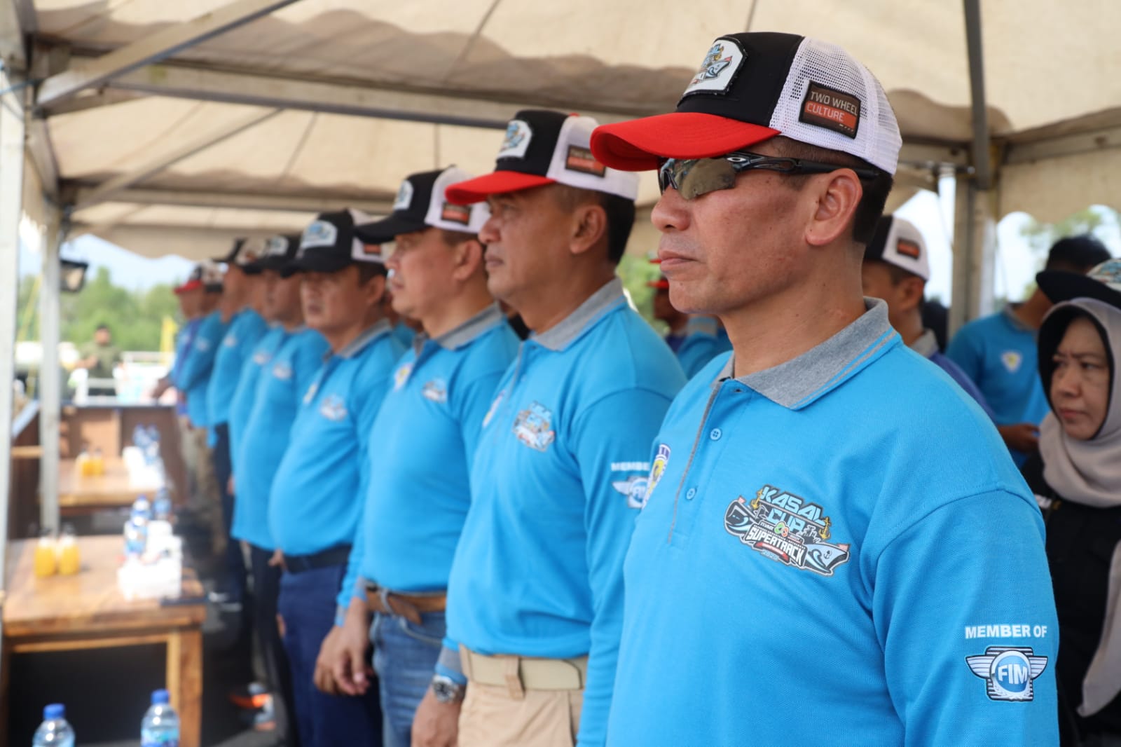 PI – Surabaya, 7 Mei 2023, Tujuh pejabat Komando Pembinaan Doktrin Pendidikan dan Latihan TNI Angkatan Laut (Kodiklatal) menyaksikan keseruan Kejuaraan Nasional Grasstrack Motorcroas Supertrack Championship Kasal Cup yang diselenggarakan selama dua hari mulai tanggal 6-7 Mei di Sirkuit Gajah Mada Lantamal V, Jetis, Kab. Mojokerto, Jawa Timur.
