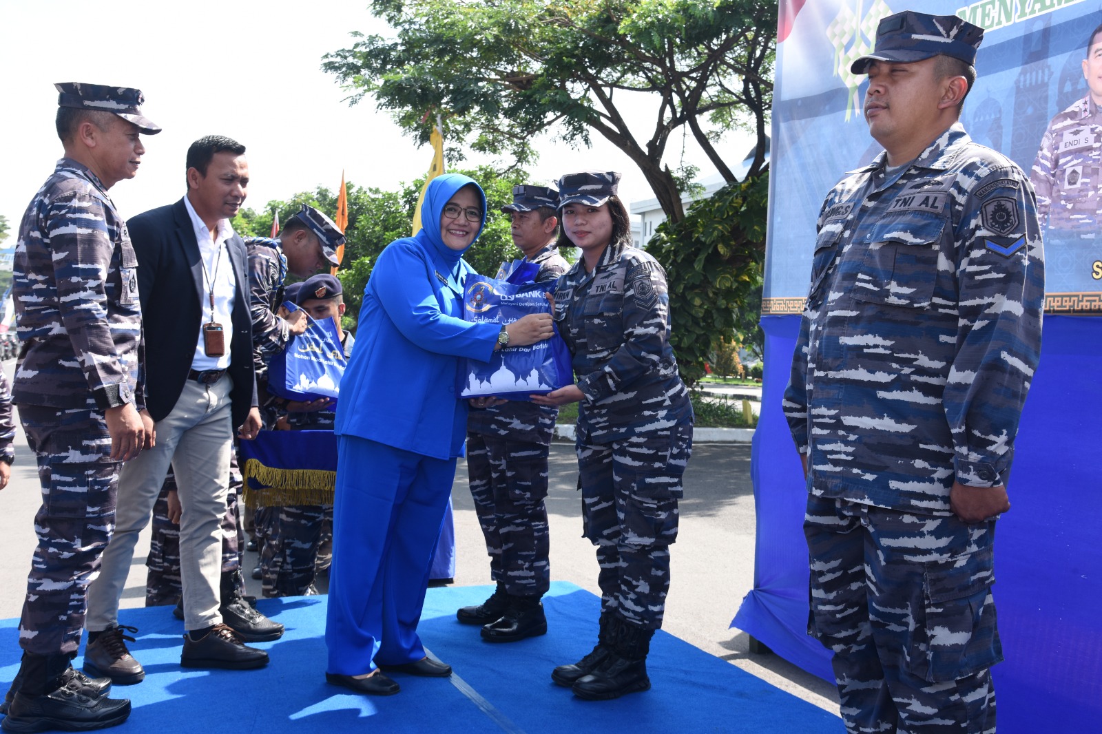 “Melengkapi kebahagiaan menyambut hari kemenangan, sekaligus wujud perhatian dan kepedulian Pimpinan, TNI Angkatan Laut bekerja sama dengan mitra bank pemerintah yaitu Bank Mandiri, BNI, BRI dan Bank Syari’ah Indonesia memaknai hikmah ramadhan, dengan cara membangun semangat untuk berbagi melalui pemberian paket lebaran kepada segenap Prajurit dan Pegawai Negeri Sipil TNI Angkatan Laut di seluruh wilayah Indonesia secara serentak,” ungkap Laksamana Muhammad Ali.