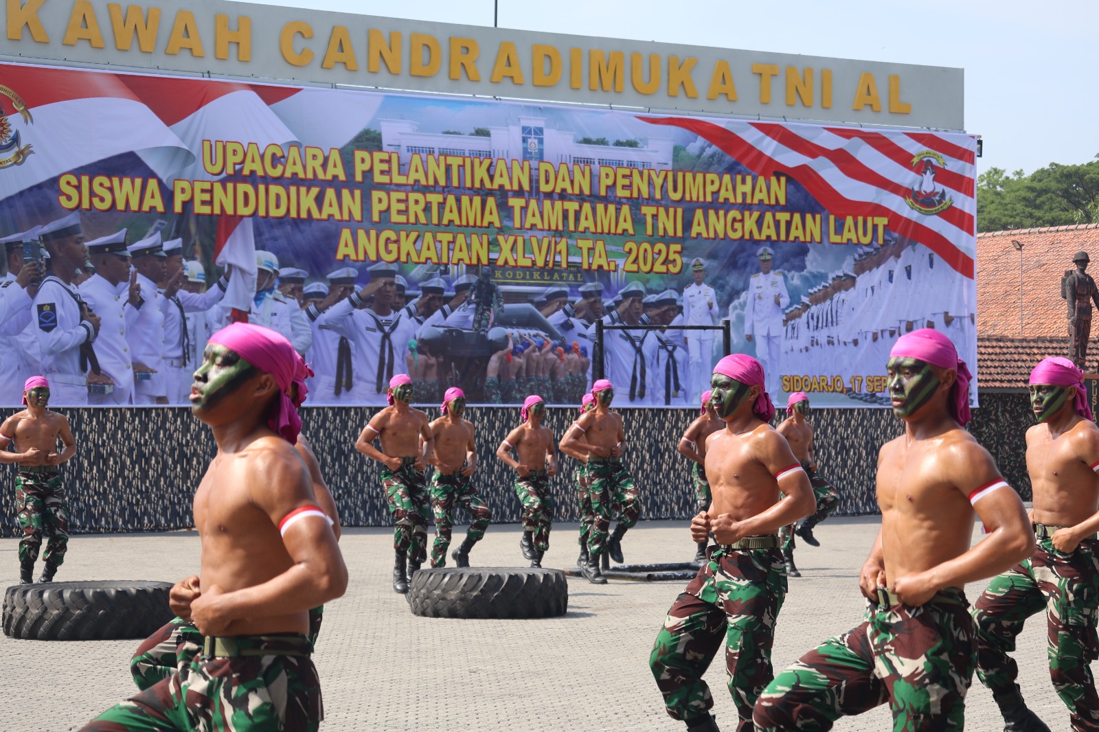 PI – Sidoarjo, Komandan Komando Daerah TNI AL Laksda TNI Ali Triswanto, S.E., M.Si., menghadiri Upacara Penutupan, Pelantikan dan Penyumpahan Siswa Dikmata Pendidikan Pertama Tamtama (Dikmata) TNI AL Angkatan XLV Gelombang I Tahun 2025, di Lapangan Kawah Candradimuka Puslatdiksarmil, Juanda, Sidoarjo. Rabu (25/03/2025)